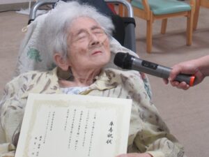 長生きの秘訣をお聞きすると、「なんでもねーてぇ。皆さんのおかげです。ありがとうございました。」
