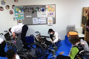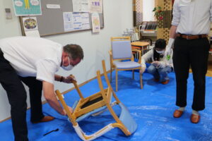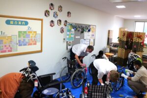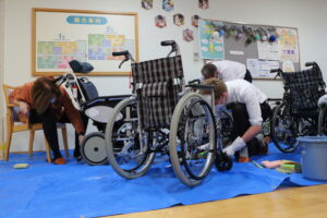 普段、私たちではなかなか手が回らない車椅子と椅子の清掃をしていただきました