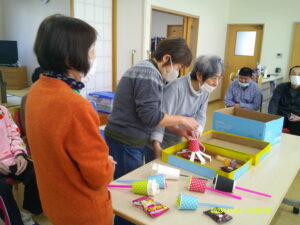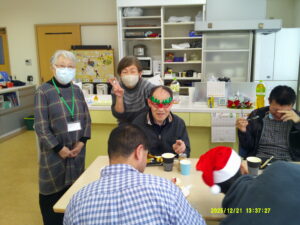 12月のイベントは「クリスマスお楽しみ会」みんなでゲームやビンゴで盛り上がりました。昼食はみなさんお待ちかねのクリスマス弁当とケーキ。プレゼントももらって楽しいクリスマス会となりました。