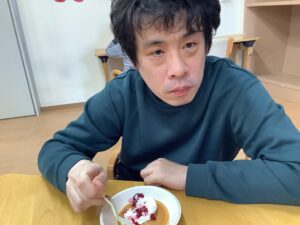 パンケーキに生クリームとミックスベリーを可愛くトッピングし、おやつの時間に食べました。特に女性利用者様は見た目にもこだわり楽しまれながら可愛く作っておられました。食べた後は「美味しかったよ」と、とても喜んでいらっしゃいました。