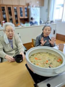 「お鍋を食べて温まりましょう!」 「いい出汁が出てるよ!」