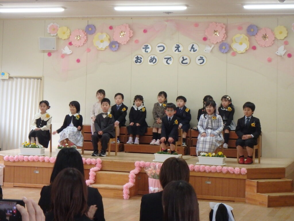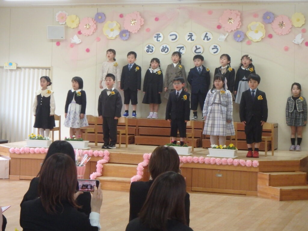 最後はみんなで保護者に感謝の言葉を伝え、歌を歌い、温かい卒園式となりました。