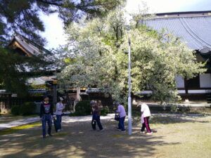残念ながら桜はほぼ終わっていましたが、本成寺の白い桜(種名は不明(;^_^A)が満開でした‼ゆっくりと散策を楽しみ、本成寺で願いごとをし、長久にもどってからガーデンで昼食会。お天気も良く外で食べるお弁当は最高‼ 食後は、お花見にはかかせないお団子(笹団子とフロリダ)をみんなでおいしく食べました🍡