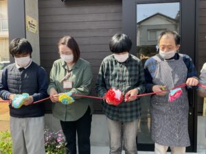 天気にも恵まれ、店舗前で利用者、職員揃ってオープニングセレモニーを行いました。